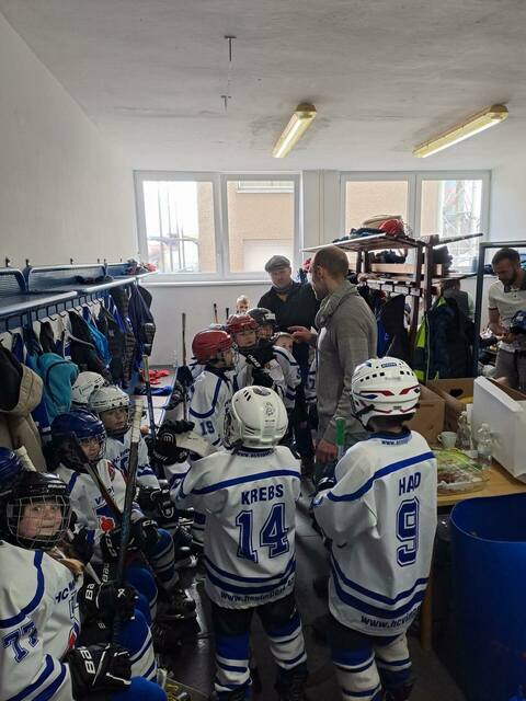 Ondřej Předota, trenér: "Ve skupině B jsme změřili síly s celky Jihlava, Motor ČB a Soběslav B. Vyjma Českých Budějovic jsme odehráli vyrovnané partie a v konečné minitabulce jsme se umístili na třetí pozici, po vyhraném zápase nad Soběslaví B. V posledním zápase jsme narazili na 3. mužstvo ze skupiny A a tím byly lední medvědi z Pelhřimova. Během 2x 15 min se hra přelévala z jedné strany na druhou, po obdržené brance jsme dokázali vzápětí srovnat a v převážné většině se hrála vyrovnána partie, kdy až v samotném záměru dokázal soupeř odskočit na rozdíl dvou branek. Tím jsme obsadili konečné 6. místo, které v důsledku předčily emoce, jak už pozitivní po vítězství nad Soběslaví, tak i ty méně šťastné, v podobě slziček, po posledním zápase s Pelhřimovem. Chtěl bych poděkovat všem dětem, ale i rodičům a popřát jim hodně úspěchů v nadcházejících sezónách. Děkuji!"